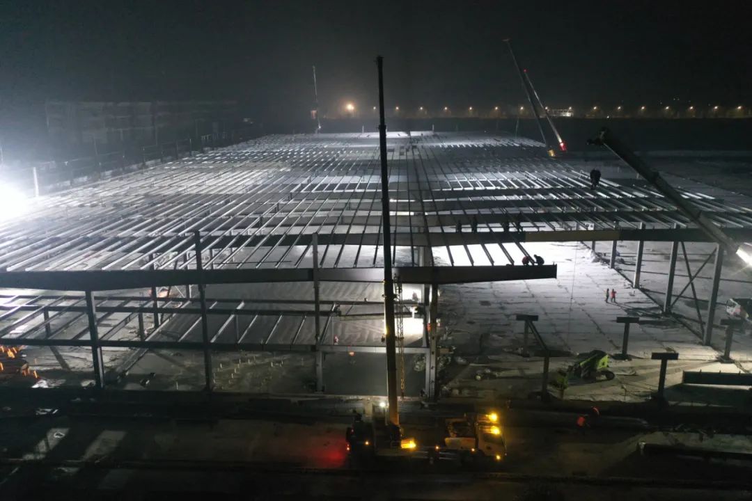 “170多位工人,24小时两班倒作业,只要天气允许,都是全员到岗。”在项目部电脑跟前,方正电机(德清)有限公司基础建设部经理严威虎向记者展示了一整个文件夹的无人机航拍画面。画面中,时间从白天到黑夜,一批一批工人不停切换,朝夕之间厂房拔地而起。