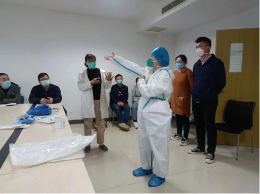培训按照《新型冠状病毒肺炎防控方案》第九版和隔离点工作实践具体相关文件要求,内容包括隔离点管理流程、医疗服务处置、异常情况处置、隔离人员健康监测、心理疏导和沟通技巧等,强调医务人员要在熟练工作流程,严格落实工作规范,细致开展人文关怀的同时,认真做好自身防护,确保安全。培训最后对工作人员进行了理论和操作考核,并根据考核评分标准严格打分,做到人人培训、人人掌握、人人过关。