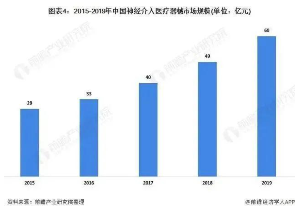 据有关资料显示,目前,国内神经介入领域至少已有24家创新企业、60家投资机构押注。随着微创手术的持续发展,以及国家政策的支持,神经介入类医疗器械还有很大的发展空间。据前瞻产业研究院资料显示,预计到2030年,我国神经介入器械市场将达到488亿元。
