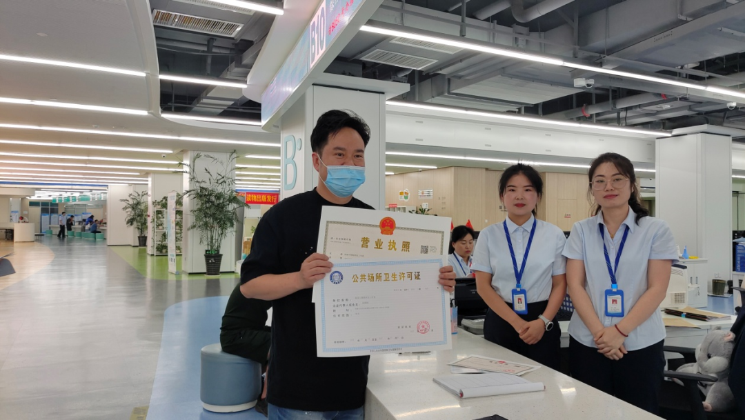 “我们只需提交一份申请材料,就顺利拿到了营业执照和公共卫生许可证,真是又快捷又方便。”耿先生体验“证照联办”后感到非常满意。