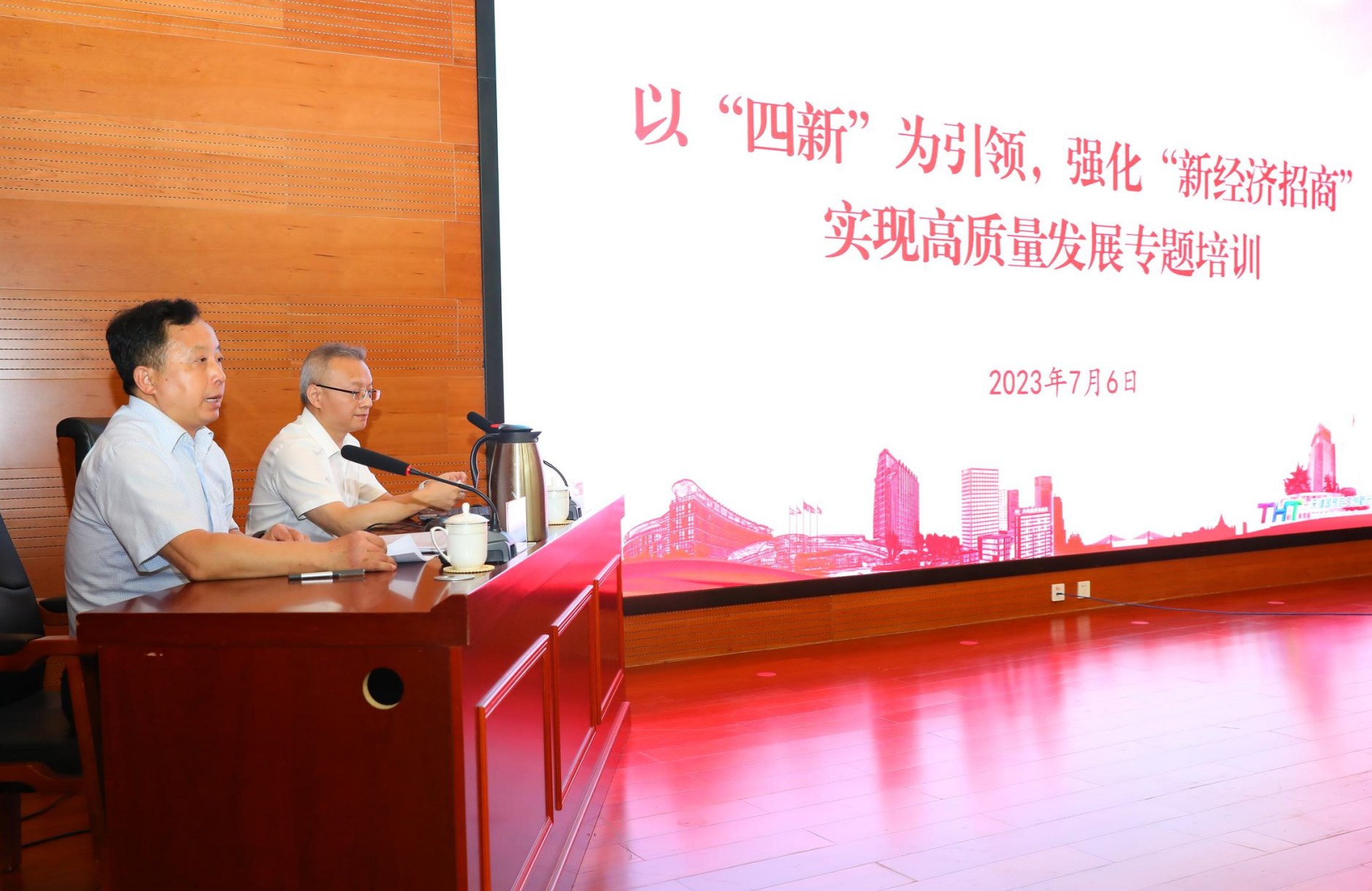 陈文丰以《以“四新”为引领,强化新经济招商实现高质量发展》为主题,立足党的二十大报告提出的“开辟发展新领域新赛道,不断塑造发展新动能新优势”的发展要求,围绕“新赛道、新场景、新物种、新治理”——“四新”发展范式,解读“四新”引领区域发展的经典案例,探讨从产业链招商到新经济招商的变迁,分析新经济招商的三种模式,以“四新”为引领,强化新经济招商,促进区域经济实现高质量发展。并结合天津高新区招商现状,提出了高新区招商引资9条建议。本次培训,思想深邃、事例鲜活,内容实用,具有很强的指导性、针对性和前瞻性,广大干部纷纷表示受益匪浅。
