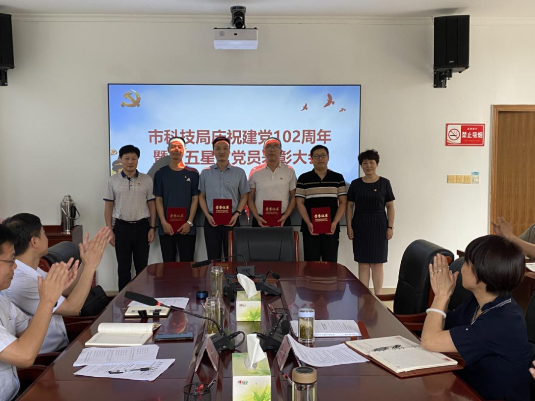 会上,洛阳市科技局党组成员、四级调研员马芳宣读了《中共洛阳市科学技术局机关委员会关于表彰“五星”党员的通报》,隆重表彰了机关第一支部、第二支部和科创情报中心支部评选出的15名“政治坚定党员典型、实干担当党员典型、创新发展党员典型、作风优良党员典型、先锋模范党员典型”“五星”党员,局党组书记、局长叶惠玲带领班子成员为他们颁发荣誉证书并表示热烈祝贺。