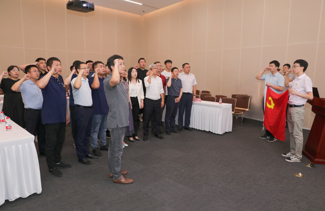 陈进红首先带领全体党员面向党旗宣读入党誓词、重温入党初心,并代表天津高新区党委、管委会向京津合作示范区企业赠送党建学习书籍。进红表示,京津合作示范区是落实京津冀协同发展国家战略的重要载体平台,已写入前不久召开的天津市委十二届三次全会文件,列入滨海新区高质量发展支撑引领行动八大工程之中,高新区党委、管委会高度重视示范区各项工作,积极落实属地社会管理职责,于去年成立专门机构服务、协调、推动示范区各项工作。在高新区和各企业的共同努力下,示范区正持续向前发展,也希望大家能够进一步发挥党建引领作用,携手同心、凝聚合力、共同缔造,继续履行好推动示范区高质量发展的职责使命。