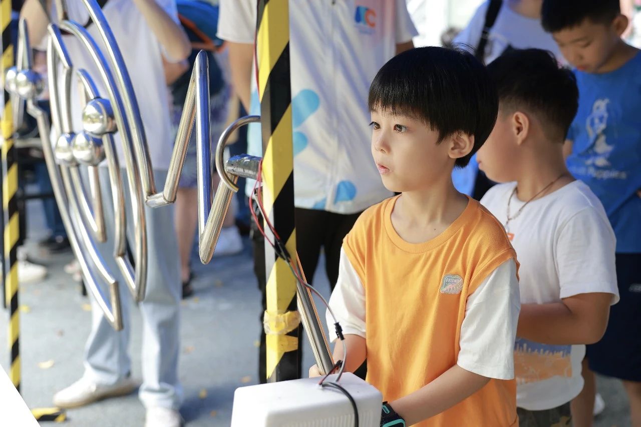 揭牌仪式后,现场开展了包括3D创意绘画、机甲大师、神奇电路等在内的一系列科普主题亲子游园活动,精彩的舞台实验吸引了众多孩子和家长驻足观看与积极体验参与。