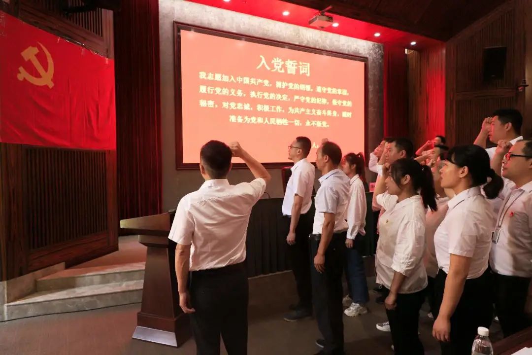 活动最后,新党员面对鲜红的党旗进行了宣誓仪式,老党员重温入党誓词。全体党员在铮铮誓词中感悟中国共产党人的信仰及为民奉献的初心。
