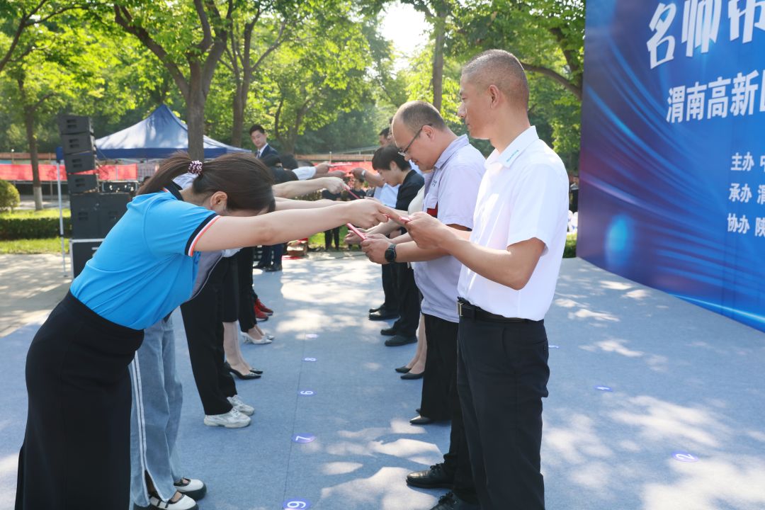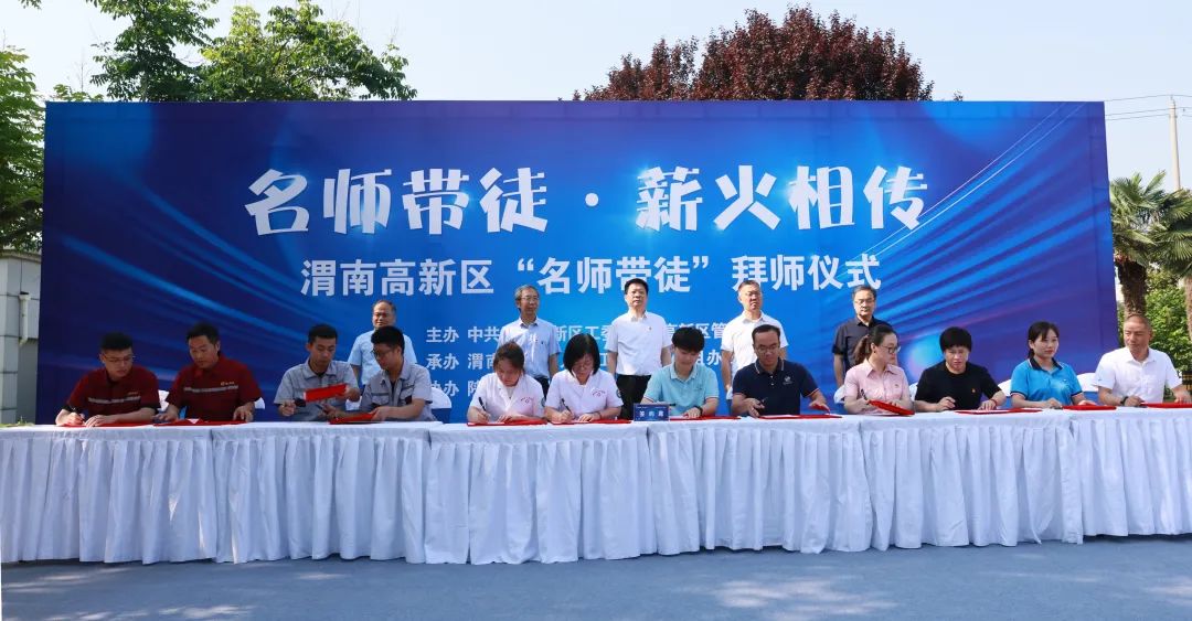 党锋在致辞中表示,近年来,渭南高新区始终坚持人才优先发展战略,持续完善人才“引育留用”全链条,有力地推动了人才与产业发展深度融合、同频共振,全区人才工作取得了新进展、新突破。开展“名师带徒”活动,就是要围绕各行业领域发展需要,充分调动广大青年人才学习知识、钻研技术、岗位成才的主动性和积极性,培养造就一批具有高超技艺和精湛技能的高层次人才,为推动技术创新和加快成果转化贡献关键力量。他强调,帮带师傅要秉持开放包容的态度,既要无私地传授工作经验,也要传承责任担当,全面提高青年人才的综合素质。青年人才要以谦逊的态度和求实的精神去拜师学艺,认真钻研技术工艺,努力提高自身技能水平,快速成长为与高新区产业发展相适应的高素质人才。各企业、单位要主动承担用才主体责任、肩负创新发展使命,充分发挥“前浪”优势,带动“后浪”成长,为高新区经济社会高质量发展注入不竭动力。
