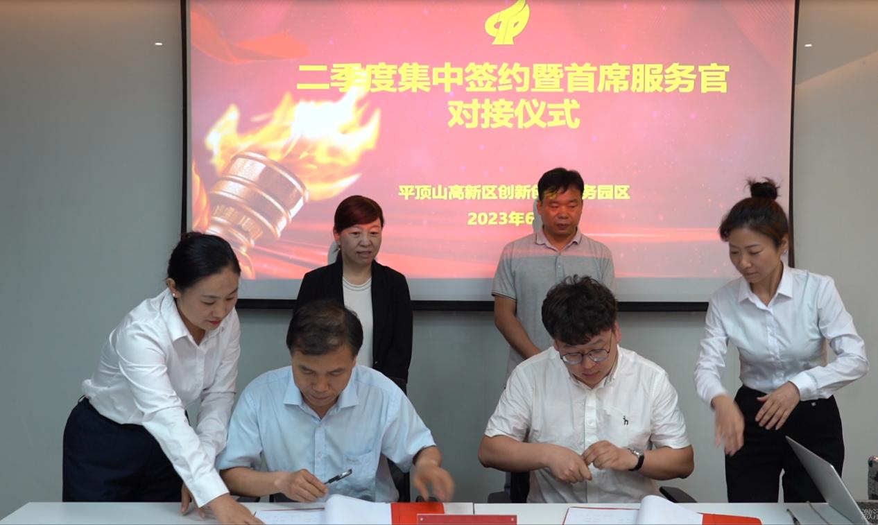 签约后,在平顶山高新区纪工委监察工作办公室监督员监督下,园区为各企业配备的首席服务官与企业负责人主动进行对接,并签署递交廉政服务承诺书,形成“1+1+N”服务工作机制,精准为项目提供一对一、全方位服务,推动“手续快办理、工程早开工、建设快推进、竣工早投产”。