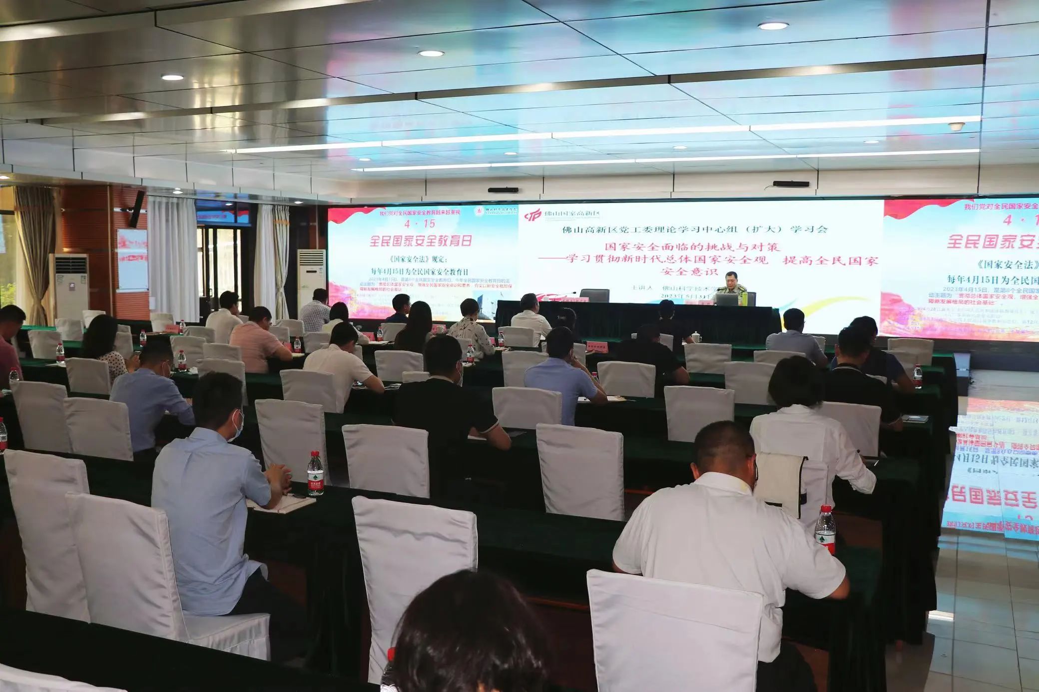 佛山高新区党工委副书记、管委会主任胡学骏主持会议并讲话。胡学骏要求,高新区领导干部要坚定不移贯彻总体国家安全观。一是旗帜鲜明讲政治,深刻理解总体国家安全观内涵要义。要深刻认识总体国家安全观的内涵要义,深入学习总体国家安全观,坚定把国家安全意识贯穿到高新区工作的全方面全过程。二是坚持发展不停步、维护安全不懈怠,深入践行总体国家安全观。要以高度责任感抓好意识形态工作,守牢互联网、社科理论等重点领域重点阵地;要加强定密、网络保密和涉密人员“三大管理”,增强技术防范和防窃密能力;要大兴调查研究之风,多到园区企业一线摸透情况、找准问题,切实解决企业发展过程中遇到的痛点难点堵点。三是加强国家安全学习宣传教育,营造国家安全人人有责的浓厚氛围。要深刻认识到推进国家安全体系和能力现代化,坚决维护国家安全和社会稳定是每位公民的义务。要大力宣传《中华人民共和国国家安全法》等国家安全相关法律法规,广泛开展形式多样、喜闻乐见的宣教活动,宣传普及国家安全知识,推动总体国家安全观深入人心,营造全民共筑安全屏障的浓厚氛围。