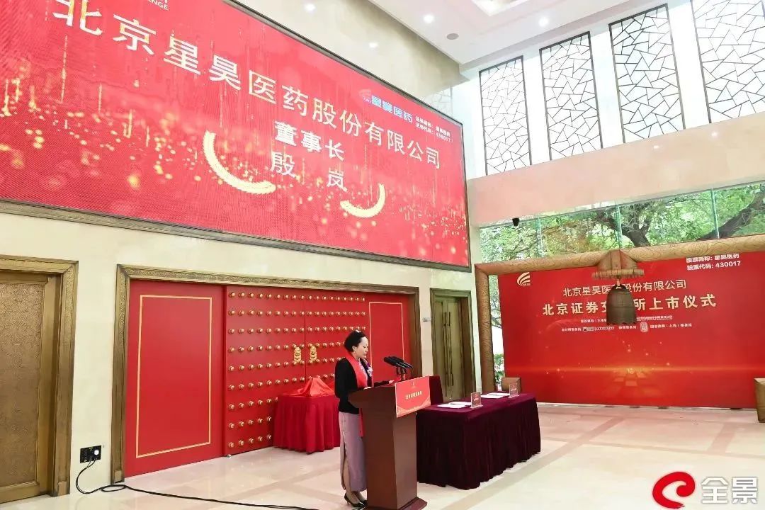 上市仪式现场,星昊医药董事长殷岚回顾了公司二十余年的发展历程,对来自各级政府、行业主管部门及社会各界对于星昊医药发展中给予的支持和帮助表示感谢,表达了对星昊医药未来美好发展前景的期望和信心。