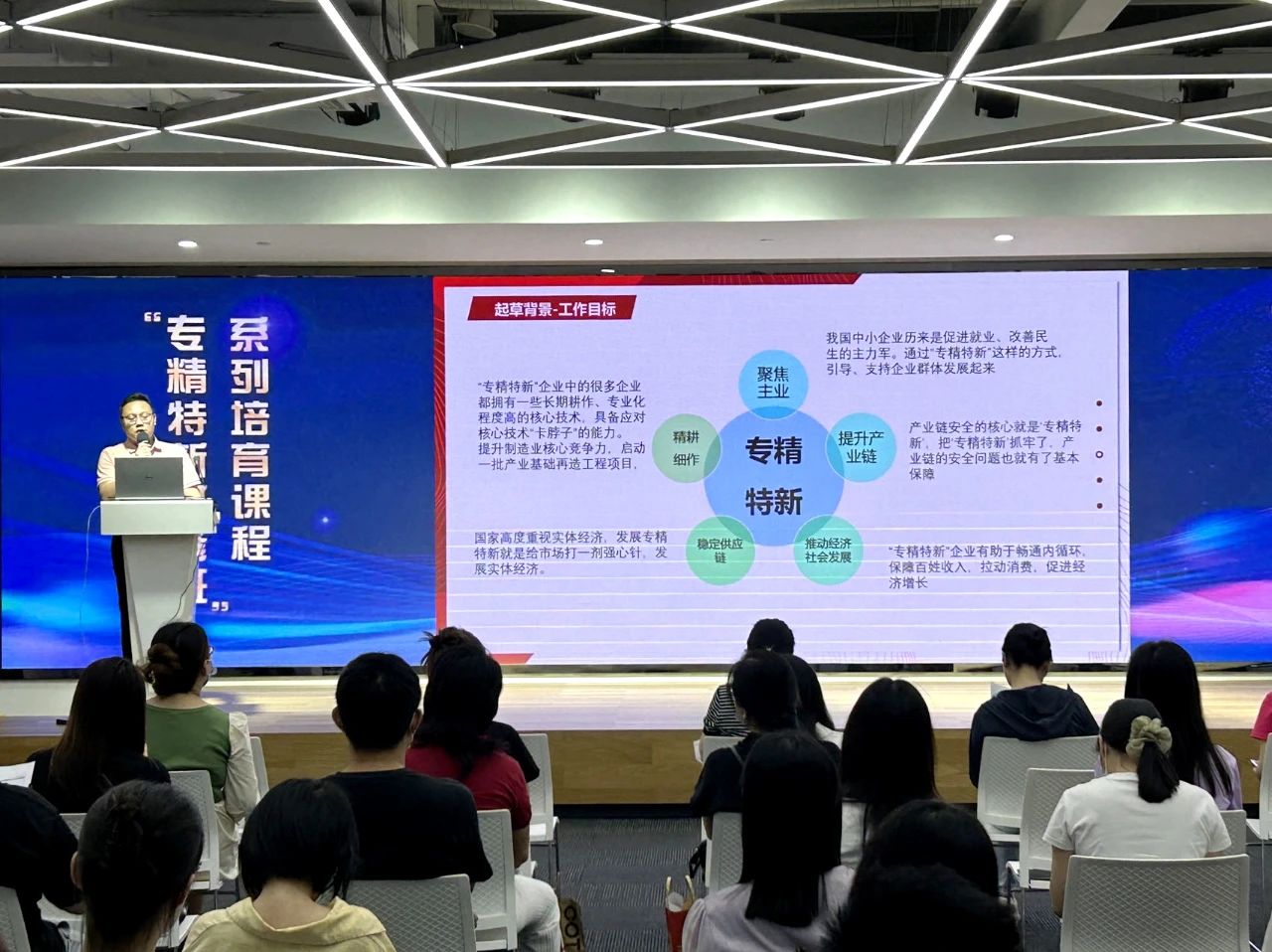 本次活动邀请了北京两化国际信息技术研究院副院长王大维,重点围绕广东省专精特新中小企业认定标准、指标分析等内容进行了专业化讲解,通过案例分析解答企业关于细分市场、有效知识产权、研发费用等疑难问题。