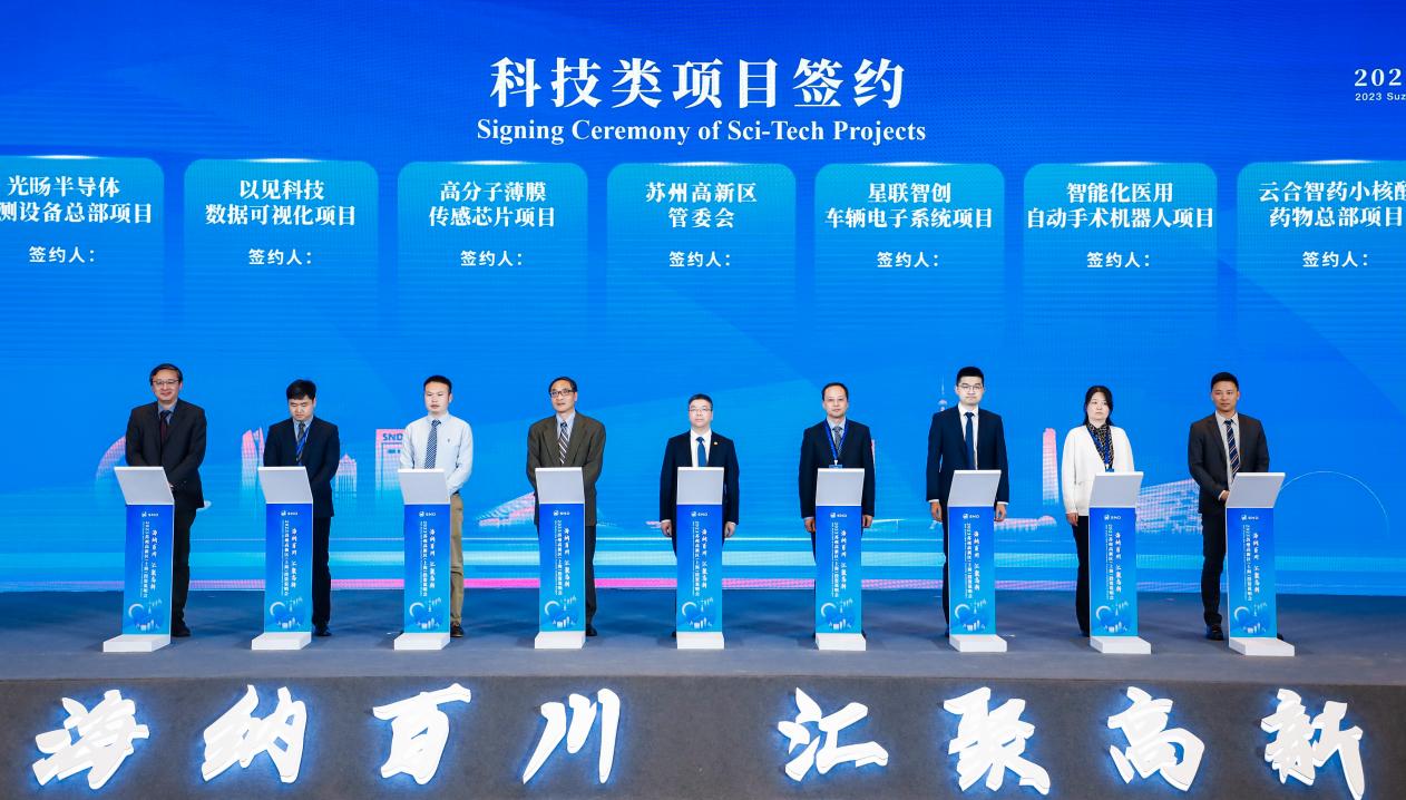 当天,一批重磅产业创新合作平台揭牌,全面提升产业创新集群发展水平。52个总投资306亿元的高质量项目签约,其中,超10亿元项目10个、超50亿元项目2个,这些项目科技含量高、产业带动强,必将为苏州高新区高质量发展走在前列注入新的强劲动能。6个重点项目启动,这些项目均为高技术产业项目,涵盖医疗器械和生物医药、集成电路、高端装备制造等特色优势产业。