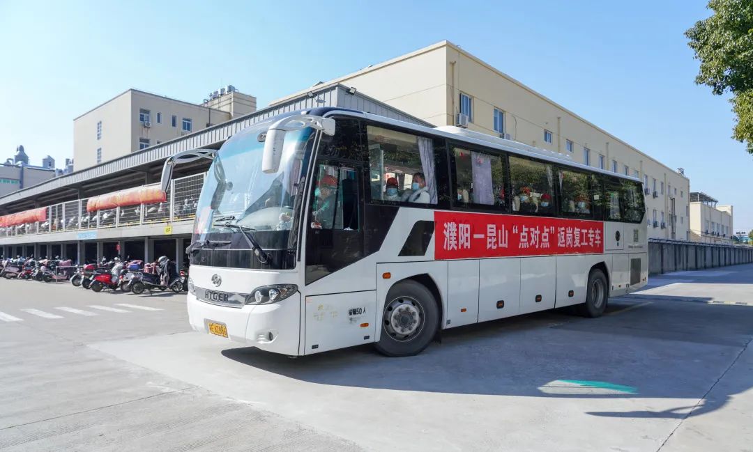 1月28日10时30分左右,几辆满载务工人员的大巴车缓缓驶进淳华科技(昆山)有限公司。105名员工乘坐“点对点”专车,跨越千里从河南濮阳、山西运城等地来到昆山,当天陆续还有近300名新员工到岗,预计2月5日前将有近5000名新员工“点对点”到昆山高新区就业,在这里开启新的工作与生活。