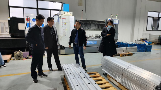在伽胜新能源(昆山)有限公司,翟明向企业负责人陈强详细了解了企业目前的生产经营情况,就新能源电池钢壳数字化生产线项目的具体落地事宜进行洽谈,他希望企业尽快完善项目设计方案,抓紧入厂开工建设。