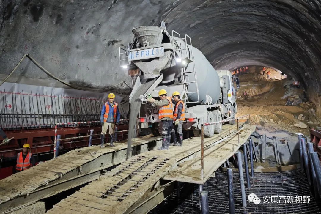 另一边,在西康高铁安康隧道出口,工人们也在马不停蹄赶进度。隧道内外,机械轰鸣声不绝于耳,电焊火光四射。60余名工人忙着对开挖后的隧道进行支护、对仰拱进行混凝土浇筑。安康隧道出口施工副经理常红建说,安康隧道出口总长7001米,为加快进度,7个面同时开挖,其中高新区涉及3个面,总长1500米,目前已完成395米。