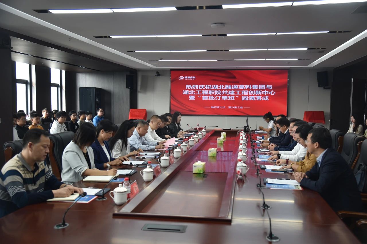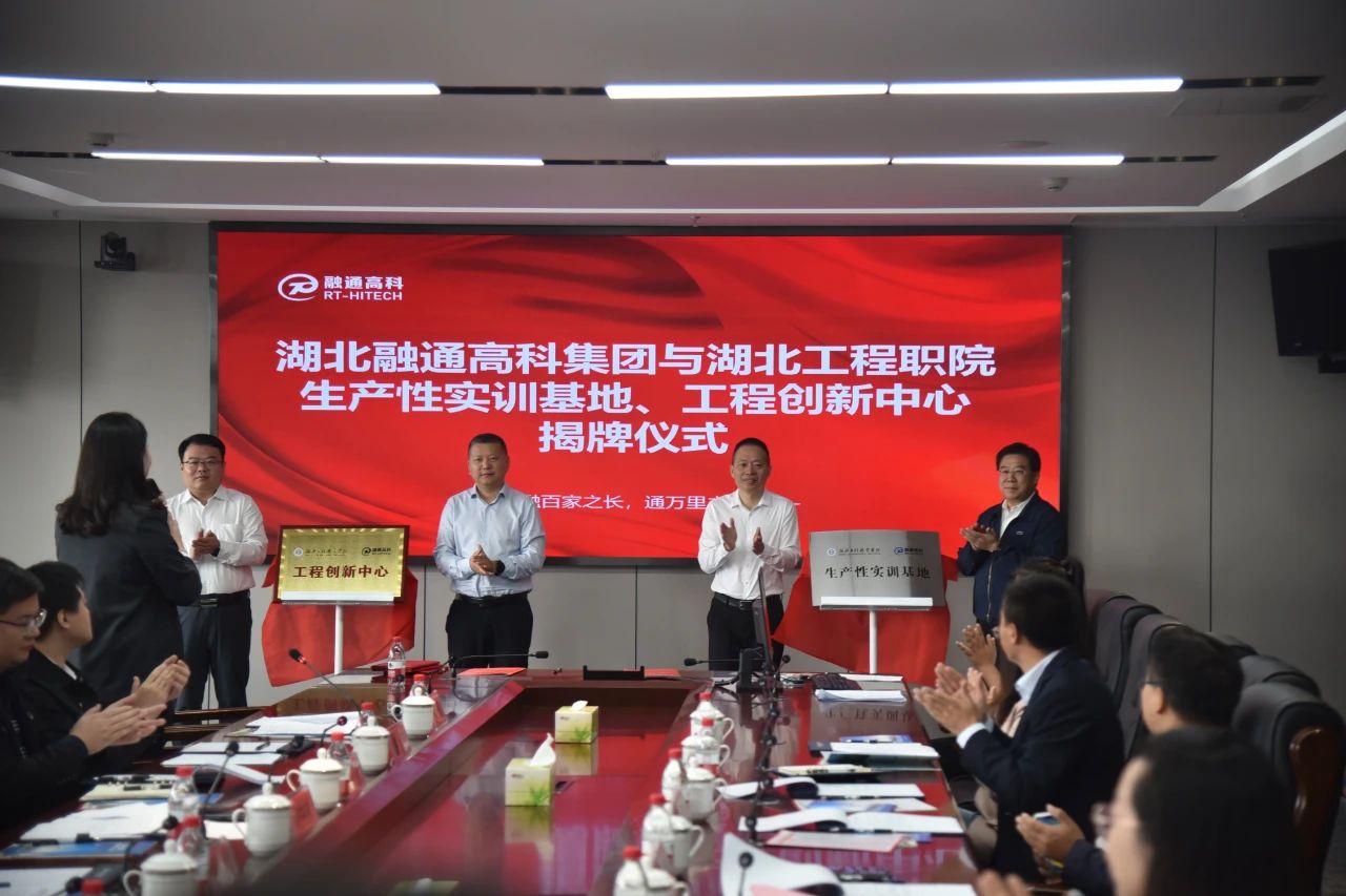 活动中,大家共同观看了融通高科企业文化视频,融通高科董事长何中林致欢迎辞。现场,湖北工程职业学院与融通高科签订“首批订单班”合作协议,依次进行“生产性实训基地”和“校企共建工程创新中心”揭牌仪式,并为校企“共享博士”(华中科技大学陈双博士团队)颁发聘书。