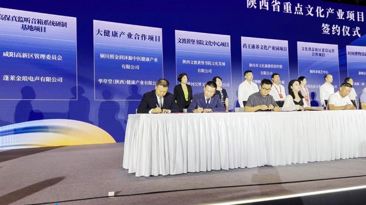 8月18日下午,在陕西省重点文化产业项目投融资推介会上,咸阳高新区党工委副书记、纪监工委书记王文生与蓬莱金琅电声有限公司董事长陈永强签订高保真音箱系统研制基地项目。该项目总投资1.8亿元,建筑面积5000平方米,主要建设高保真录音棚音响系统、高端会议扩声系统研发与制造基地。