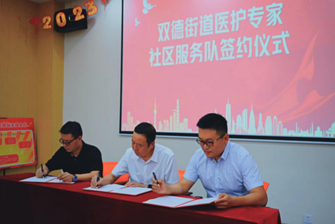 仪式现场,吉林大学第一医院干部病房六疗区、吉林开放大学、双德街道共同签订了成立社区医疗服务队的合作协议,并为医护代表颁发了社区医护专家及服务队聘书。签约仪式结束后,吉大一院专家团队还为湖光社区居民开展义诊服务,提供了预防保健和健康咨询等服务,每位专家都耐心接待前来问诊的居民,并根据居民的不同情况给予科学合理的治疗建议及日常注意事项,受到了群众的一致好评。