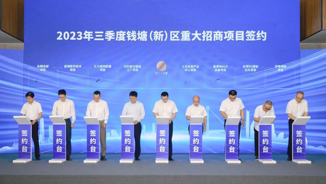 招商引资是经济发展的源头活水,是事关浙江省高质量发展的战略工程。今年以来,钱塘牢固树立“大招商”和“招大商”的理念,发布招商引资“153”计划,全面启动五大招商攻坚行动,累计开展敲门招商600余家次、洽谈项目总投资超940亿元,上半年签约亿元以上产业项目53个,其中10亿元以上6个;落地亿元以上固投类项目38个,其中10亿元以上项目11个。
