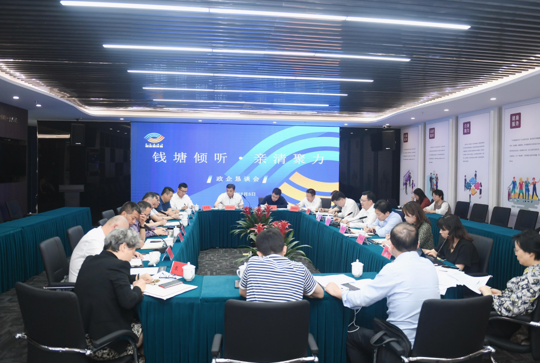 恳谈会上,钱塘区工商联(总商会)企业代表围绕企业现状、产业政策、区域发展方向和优化提升营商环境等主题,谈发展、建真言、献良策。金承涛边听边记,同大家深入交流,对企业提出的问题,逐一进行解答。