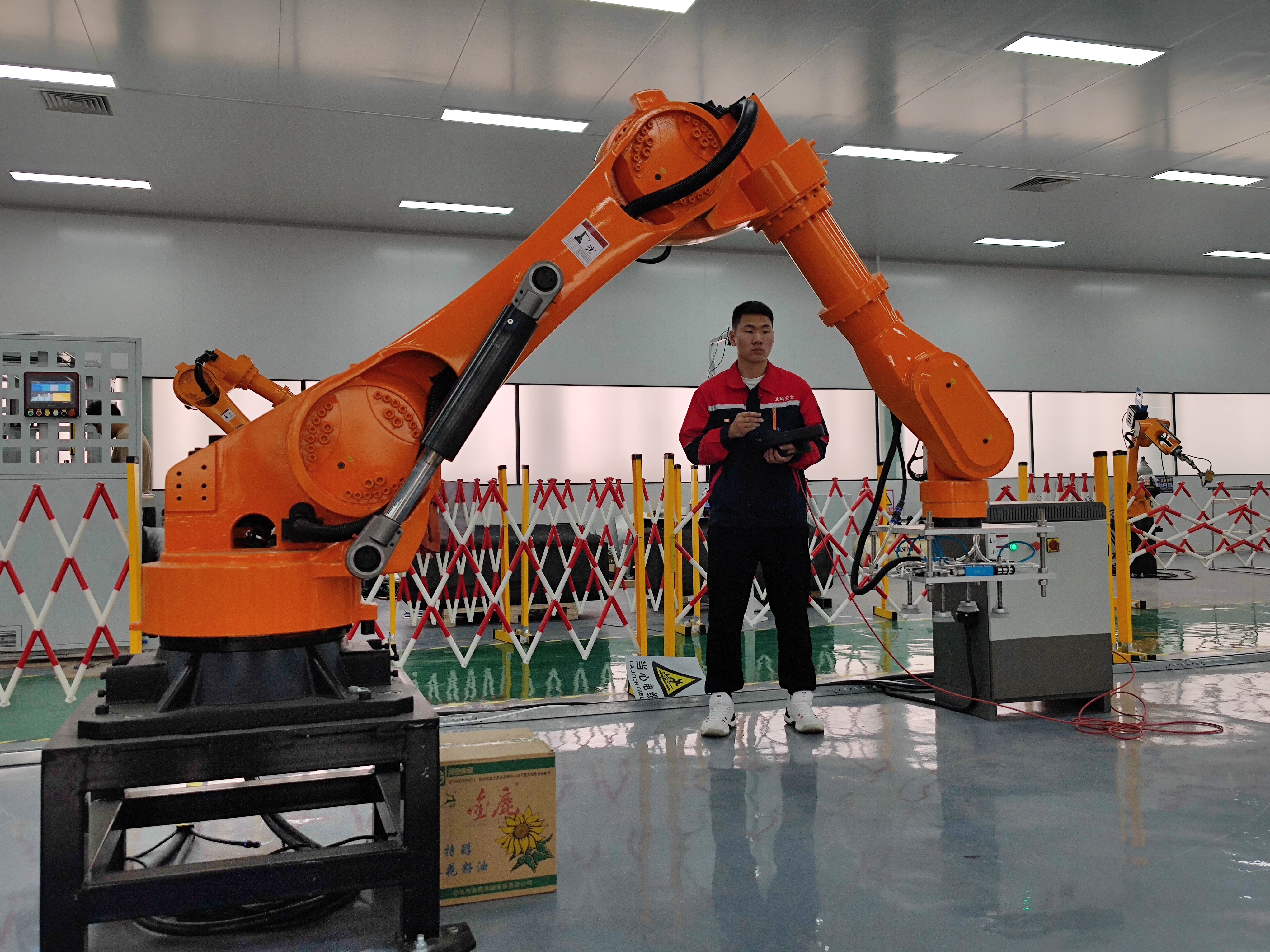 在北科交大机器人集成车间南侧,一台电解铝炭块打磨机器人正在进行性能测试。当前,众多厂家阳极炭碗及表面粘附物的清理普遍采用人工作业方式,该方法存在环境差、安全风险大、效率低和人工成本高等问题。该企业自主研发的炭块打磨机器人能有效克服温度、重污染等恶劣环境,实现24小时高效率打磨生产,成功解决了人工易疲劳、生产效率低等问题。