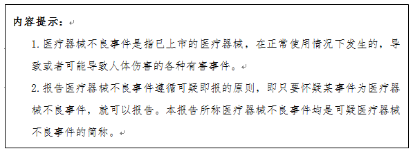 3.医疗器械不良事件:是指已上市的医疗器械,在正常使用情况下发生的、导致或者可能导致人体伤害的各种有害事件。