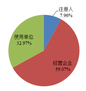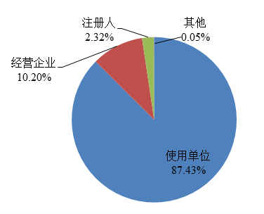 截至2022年12月31日,在国家医疗器械不良事件监测信息系统中注册的基层用户(包括注册人和备案人(以下简称注册人)、经营企业和使用单位)共397,561家,比上年增长5.43%。其中注册人31,648家,比上年增长7.51%,占用户总数的7.96%;经营企业234,836家,比上年增长7.06%,占用户总数的59.07%;使用单位131,077家,比上年增长2.17%,占用户总数的32.97%(图3)。