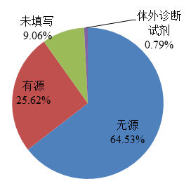 2022年,国家药品不良反应监测中心收到的医疗器械不良事件报告中,涉及无源医疗器械的报告448,422份,占报告总数的64.53%;涉及有源医疗器械的报告178,003份,占报告总数的25.62%;涉及体外诊断试剂的报告5,513份,占报告总数的0.79%;未填写医疗器械结构特征的报告62,928份,占报告总数的9.06%(图7)。