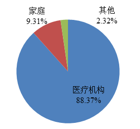 2022年,国家药品不良反应监测中心收到的医疗器械不良事件报告中,使用场所为“医疗机构”的报告614,059份,占报告总数的88.37%;使用场所为“家庭”的报告64,696份,占报告总数的9.31%;使用场所为“其他”的报告16,111份,占报告总数的2.32%(图8)。