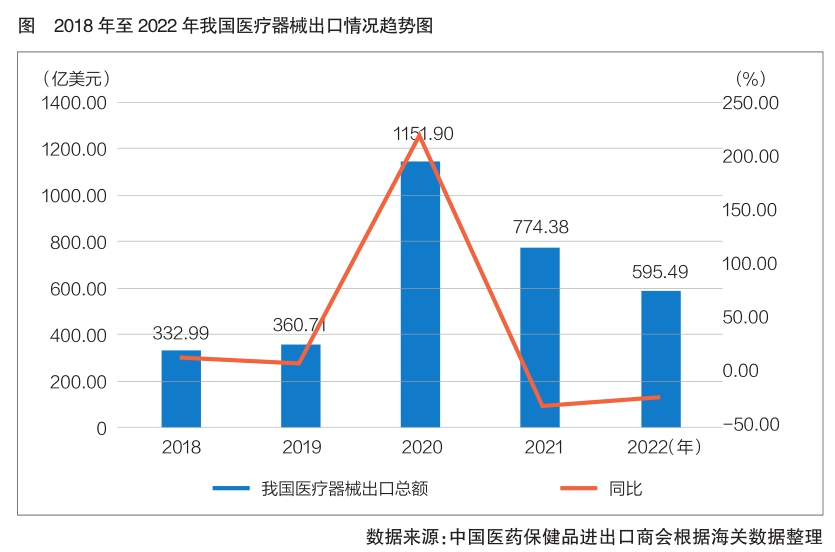 2020年至2022年,我国医疗器械产业高速发展,市场规模进一步扩大。在国际贸易方面,从新冠疫情初期全球紧急囤购防护产品,到后来个别疫情严重国家和地区大规模采购制氧机等,再到后期全球防疫产品订单量断崖式下跌,这三年我国医疗器械进出口贸易经历了大起大落。