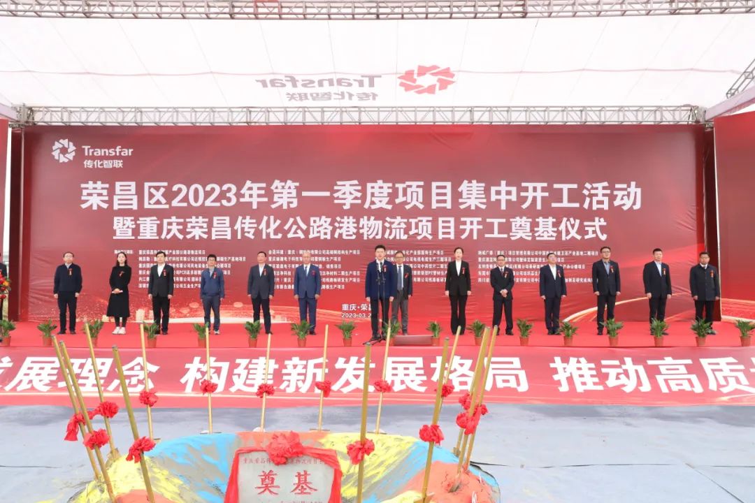 开工仪式上,参加活动的领导嘉宾共同为重庆荣昌传化公路港物流项目培土奠基。