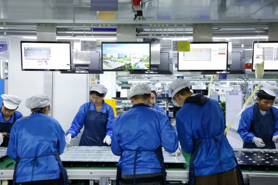 在冠捷科技生产车间,工人们开足马力赶制海外订单 厦门日报记者 张奇辉摄