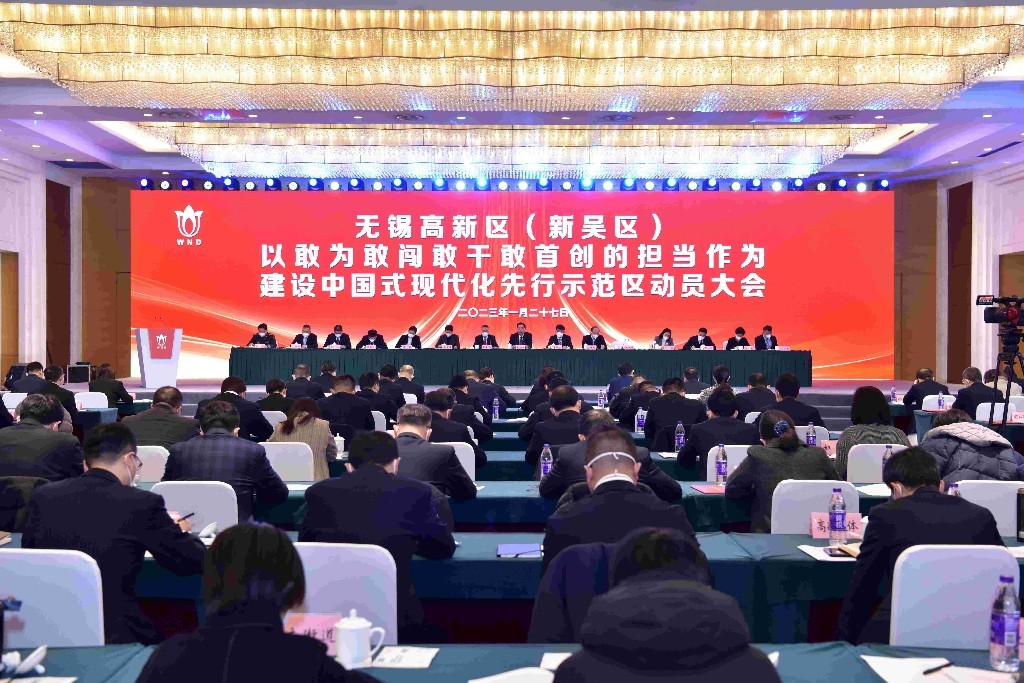 1月27日,无锡高新区召开建设中国式现代化先行示范区动员大会。会上,该区解读了《建设中国式现代化先行示范区总体方案》《关于贯彻落实“干部敢为、地方敢闯、企业敢干、群众敢首创”精神要求的实施方案》,以及发布争当创新驱动先行示范、争当现代特色产业体系建设先行示范等11个“三年行动计划”,旨在在全国先行先试构建起“1+1+11”的中国式现代化先行示范建设的工作体系,力求在全面推进中国式现代化中,展现“走在前、挑大梁、多作贡献”的责任担当。
