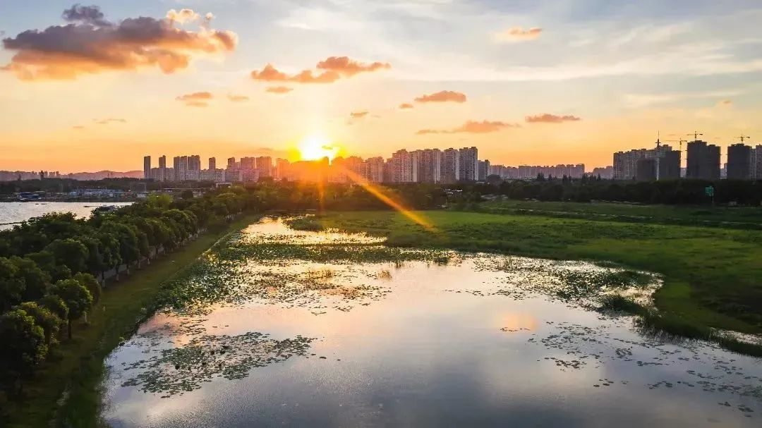 大溪港湿地公园毗邻太湖,拥有7.8公里太湖岸线,是无锡最佳日落观赏地。傍晚时分,落霞孤鹜齐飞,水面波光粼粼,这大概就是新吴独有的浪漫。